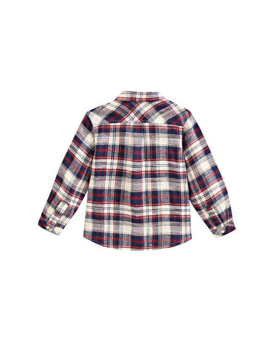 Camicia in flanella per ragazzi in tartan blu-bordeaux