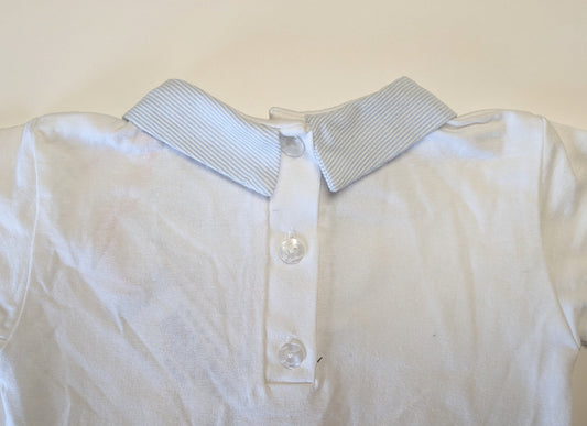Hélena, Camicetta da ragazza, in popeline bianco con ricamo blu navy