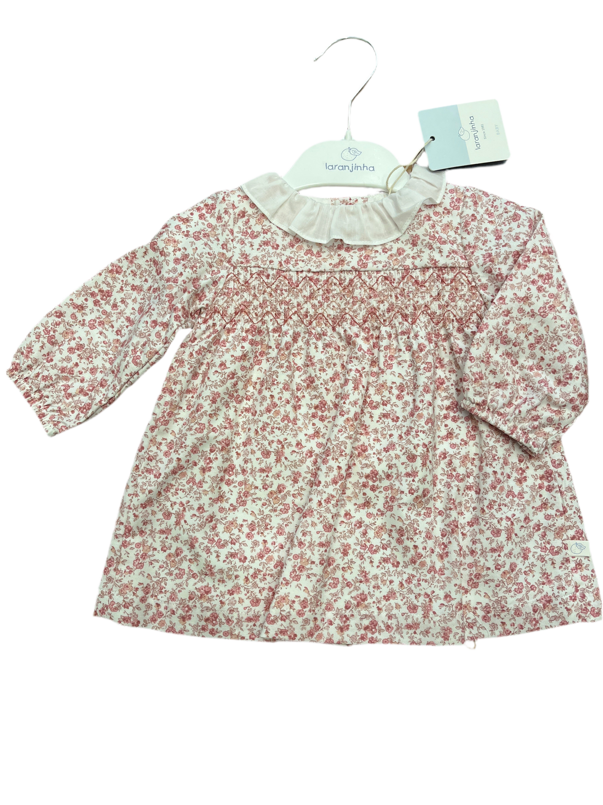 Abito fiori rosa con collo ad anello bianco