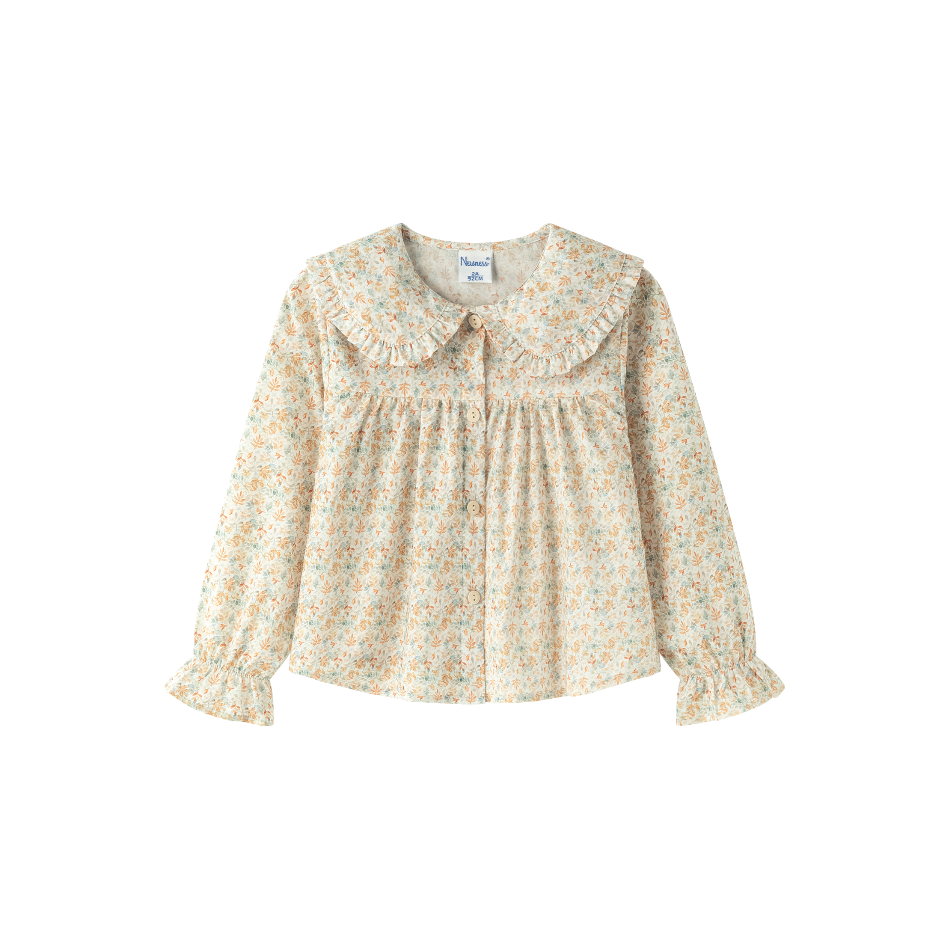 Blusa a maniche lunghe con colletto Peter Pan tono su tono, elastico all'interno dei polsini, chiusura frontale con bottoni Abbigliamento per bambina. Realizzato in 100% Cotone