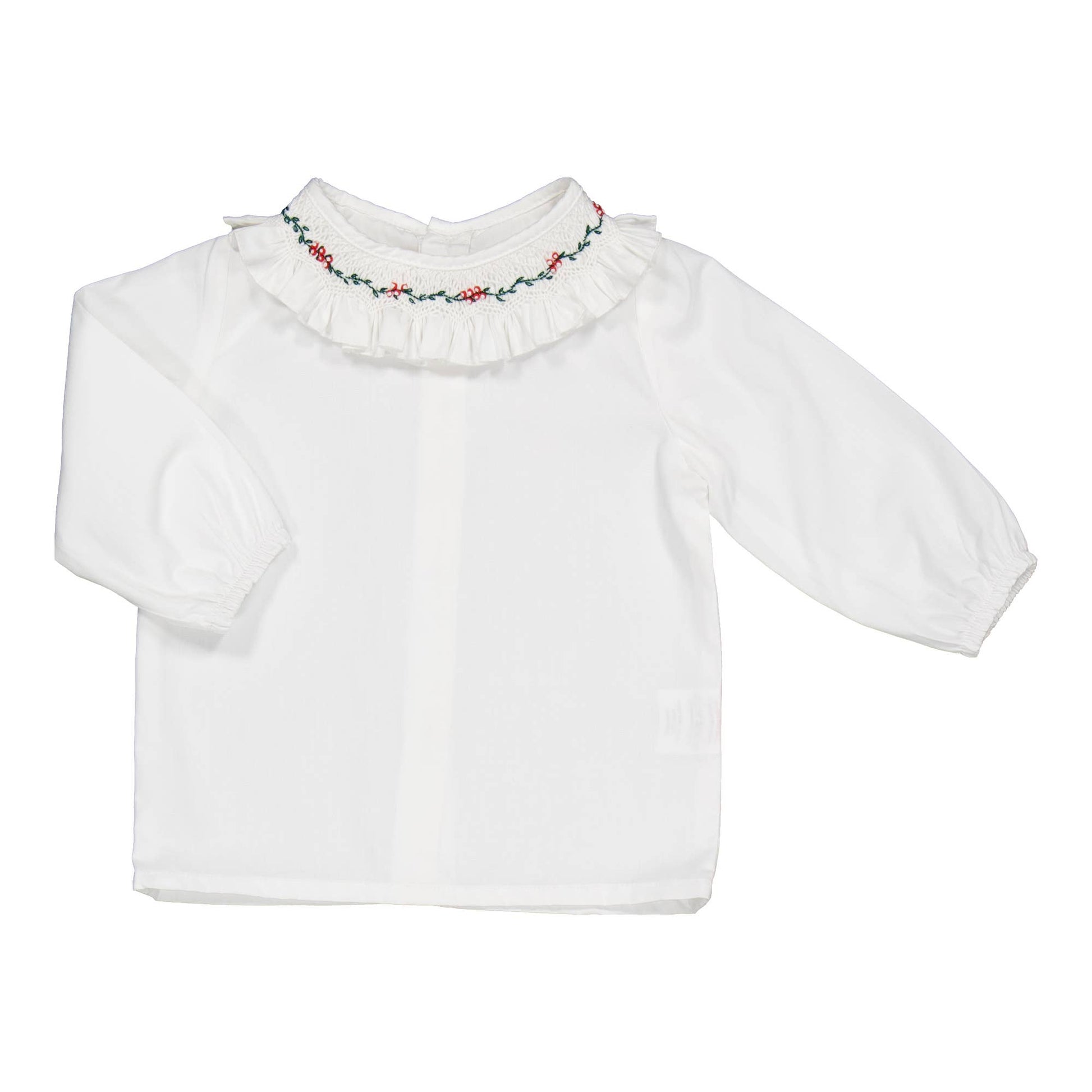 Faye, Camicetta da Ragazza, In Popeline Bianco Con Ricamo di Agrifoglio