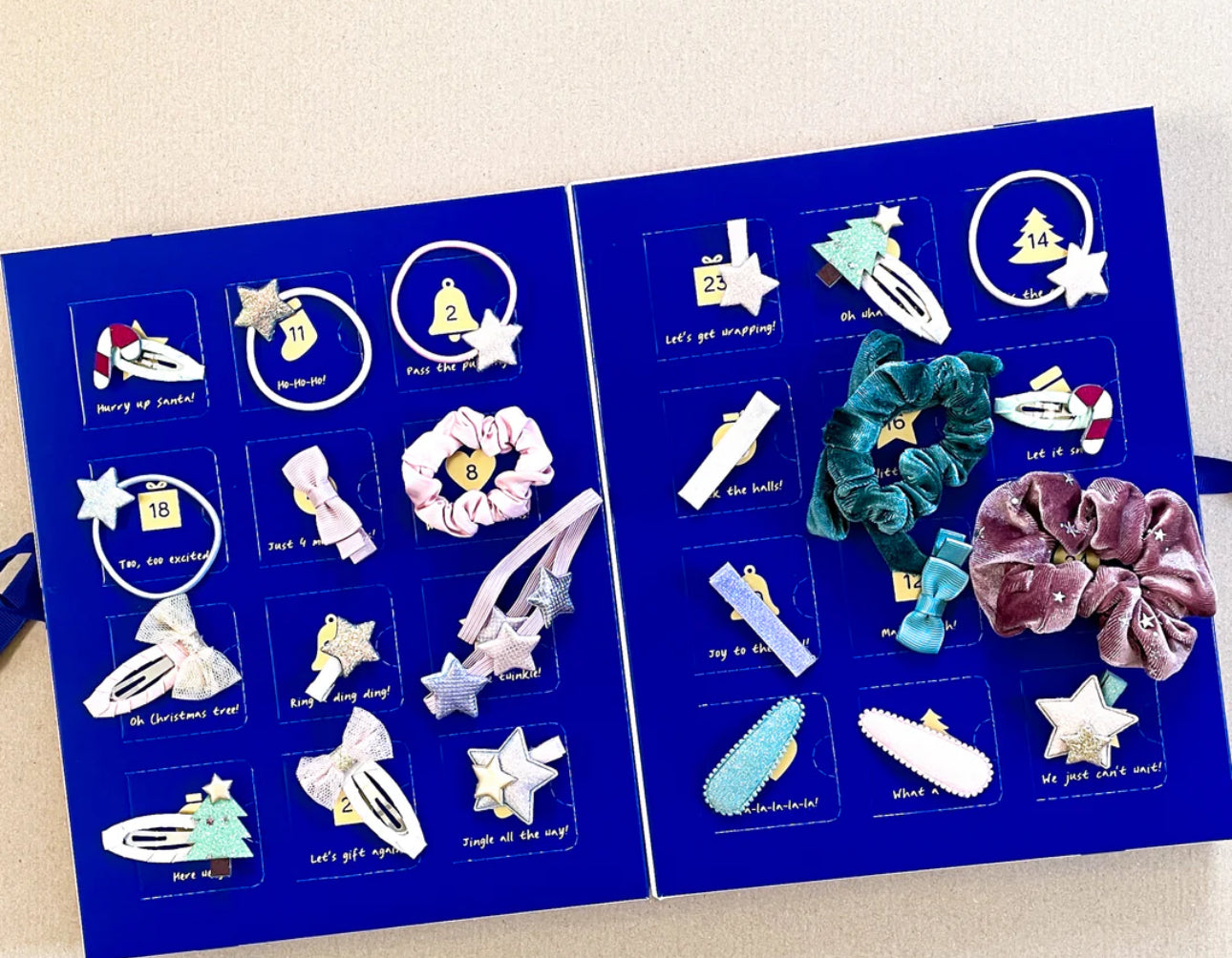 Scambia il cioccolato con dei regali splendidi e duraturi quest’anno! Il conto alla rovescia perfetto per il Natale dei più piccoli che amano gli accessori! Dietro ogni porticina si nasconde una bellissima molletta, un cerchietto o uno scrunchie, perfetti da indossare durante il periodo natalizio e anche dopo!