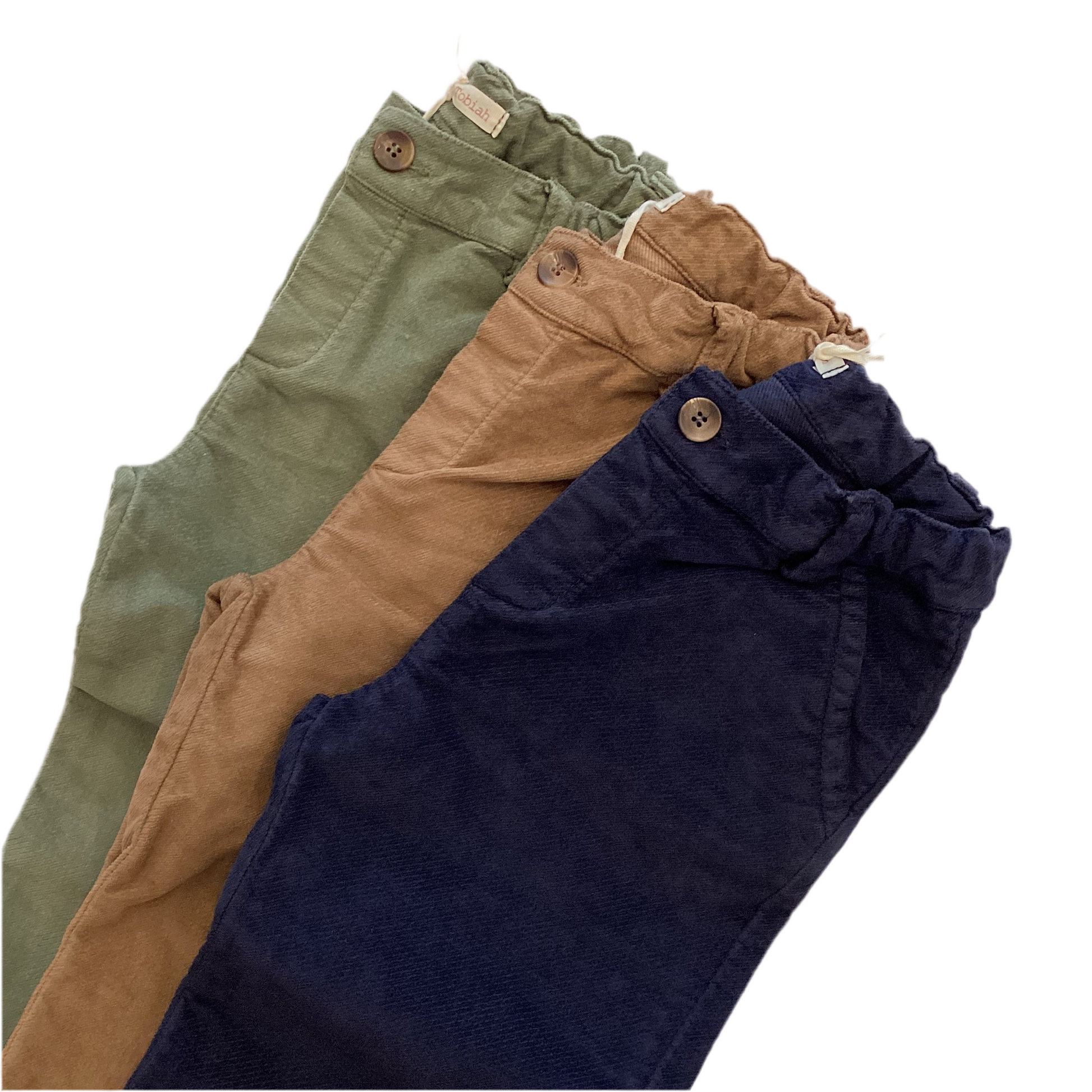 Pantalone in vellutino in tre varianti colore, blu verde oliva e biscotto!
