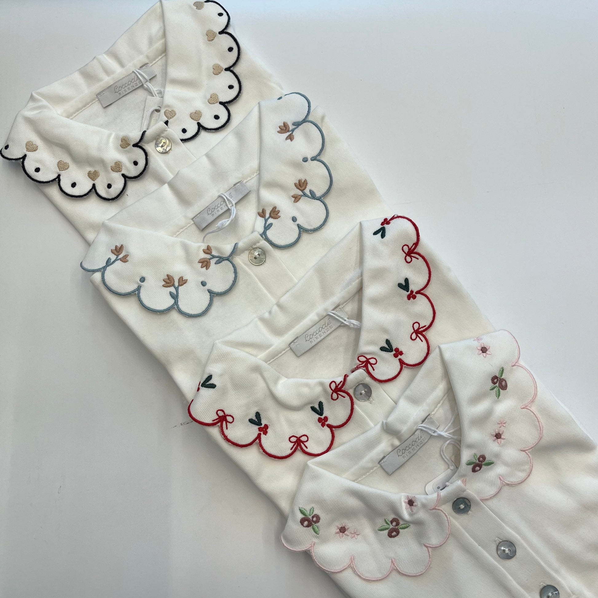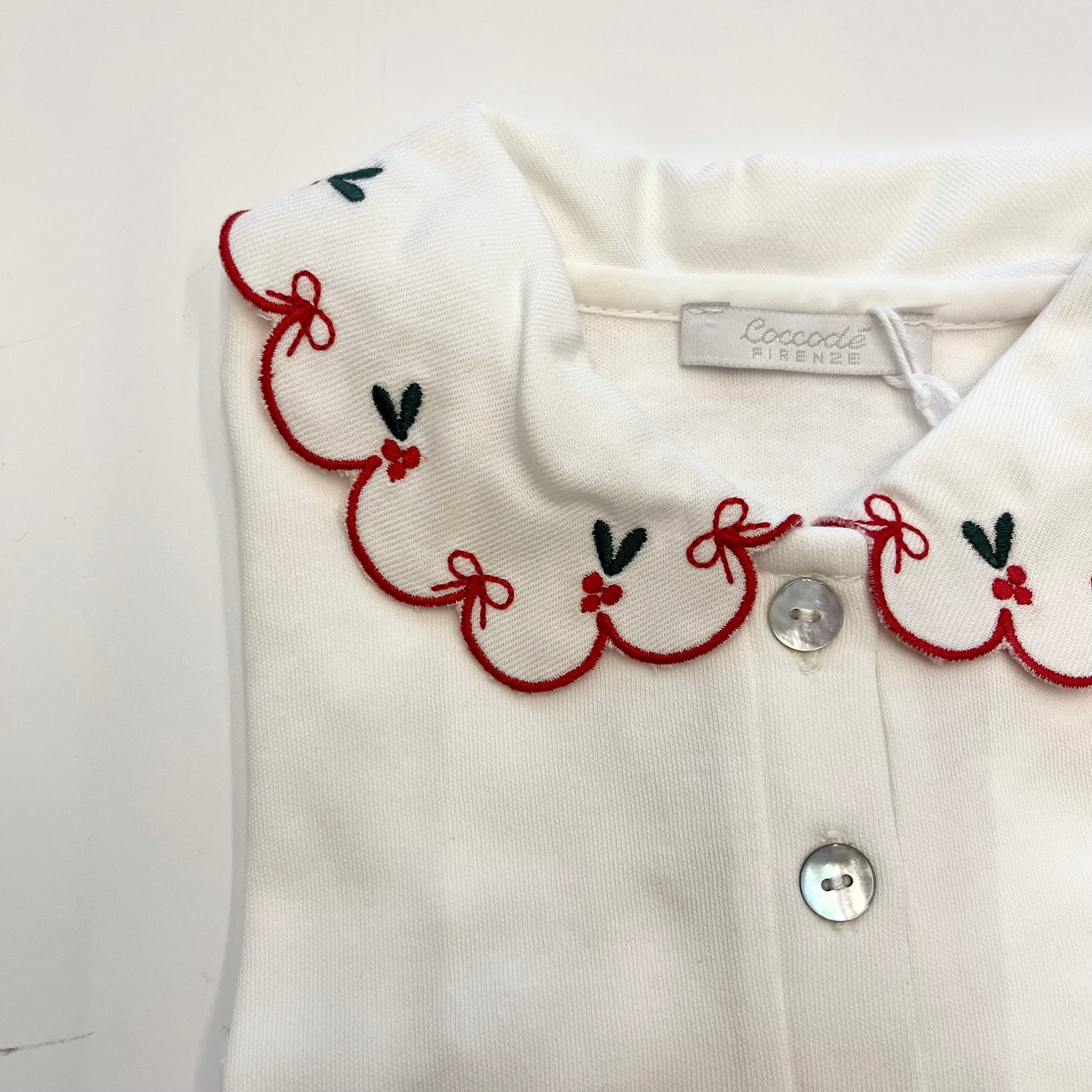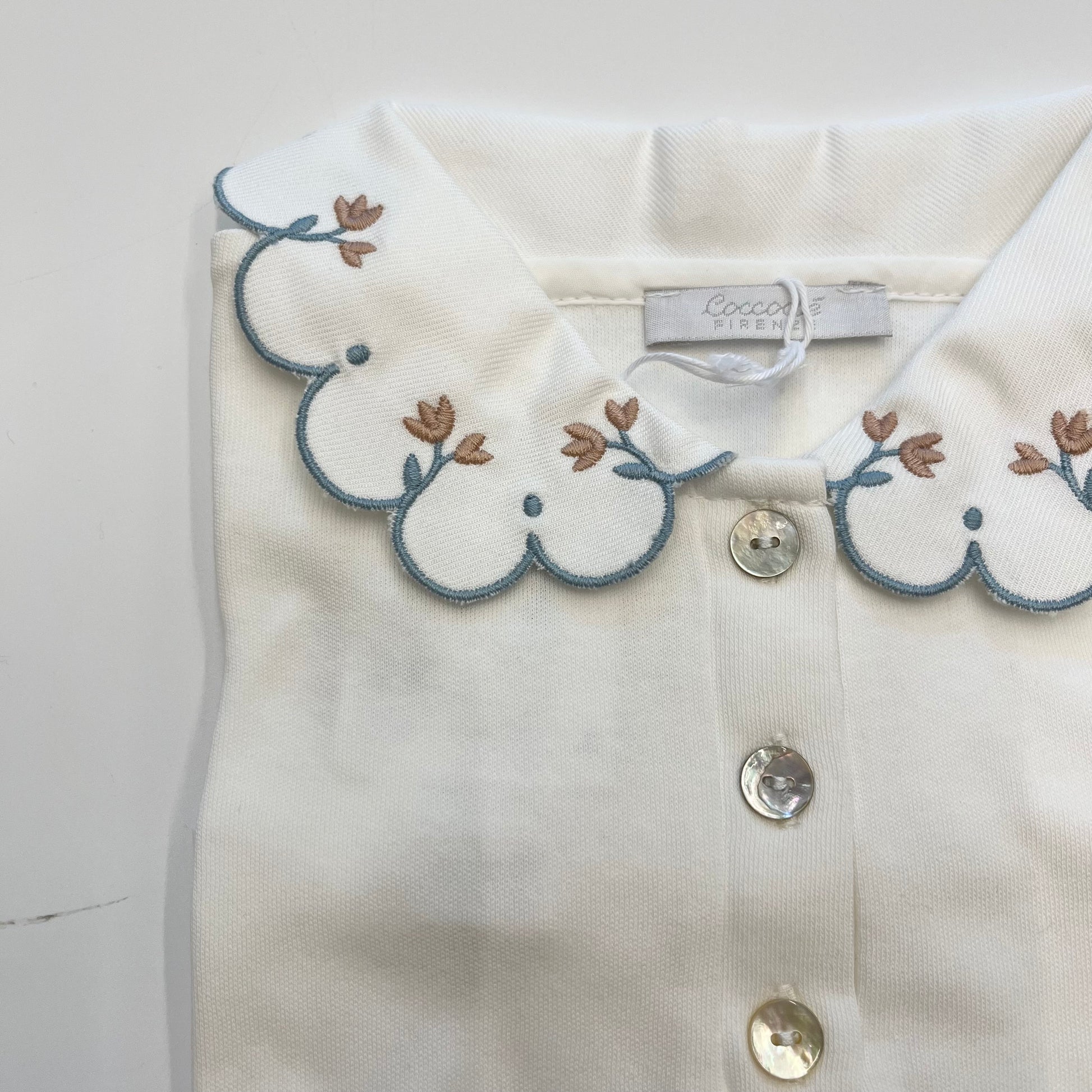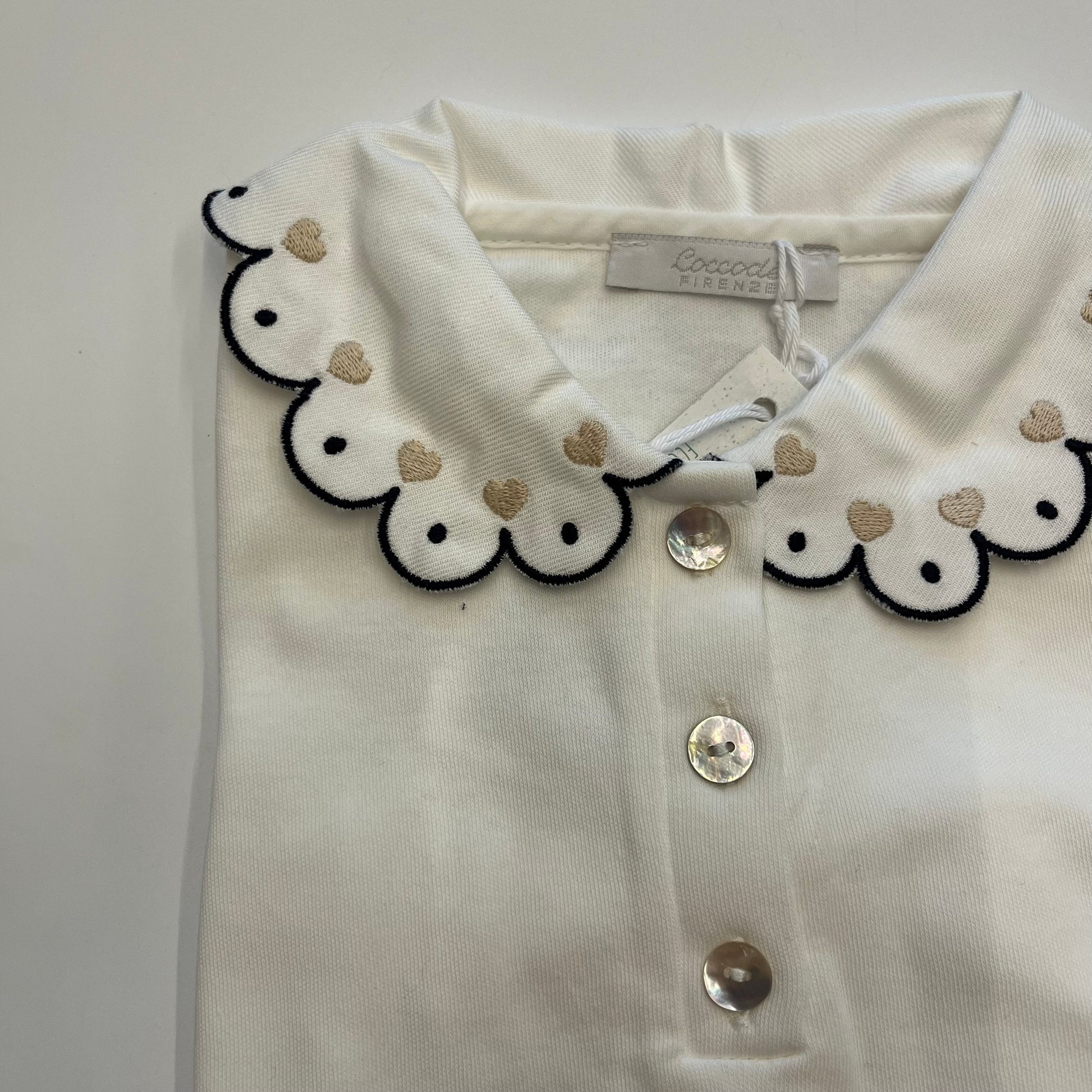 Polo in cotone con colletto smerlato e decorato.