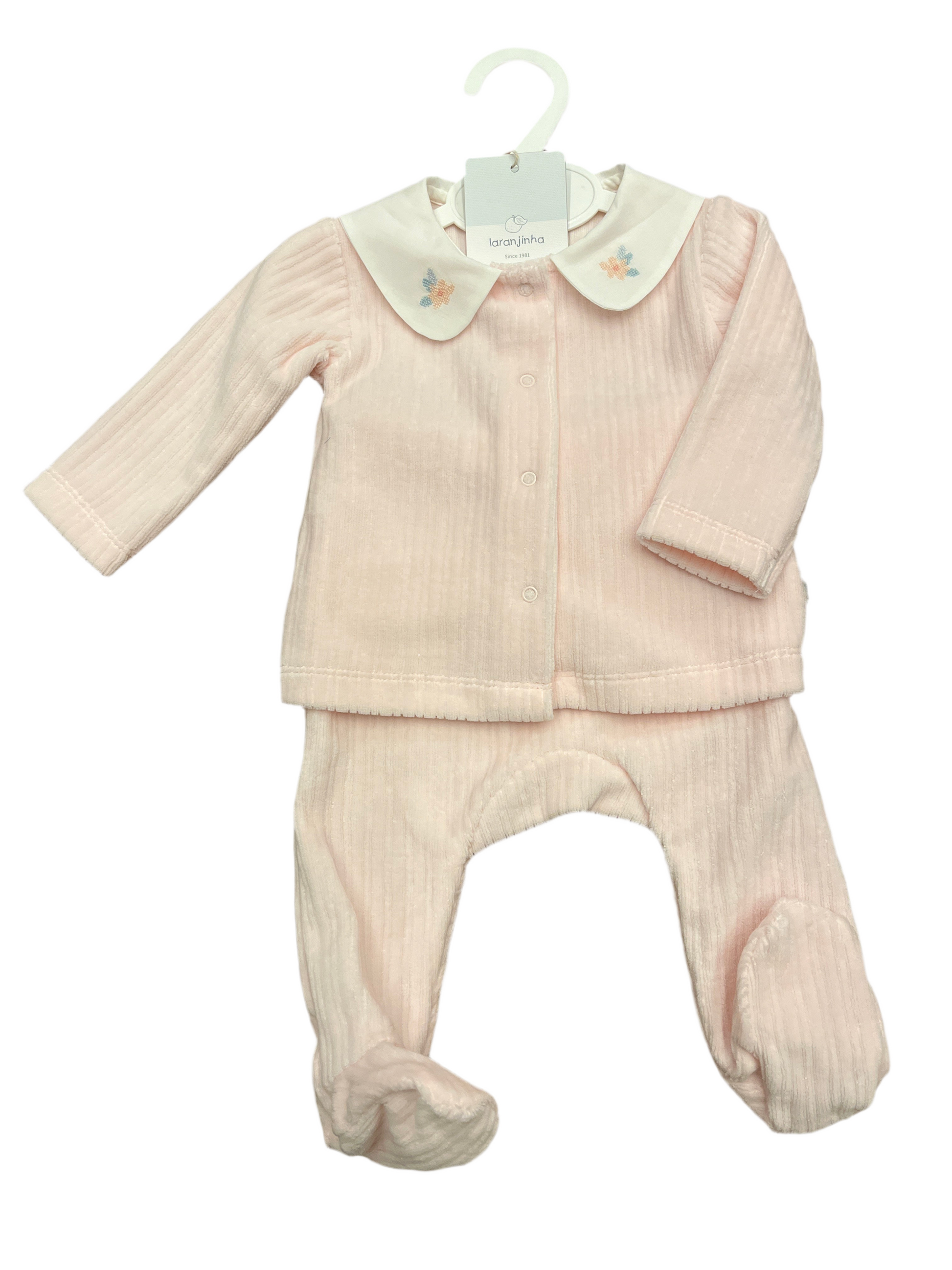 Set 2 pz ghetti a in ciniglia e blusa con collo ricamato